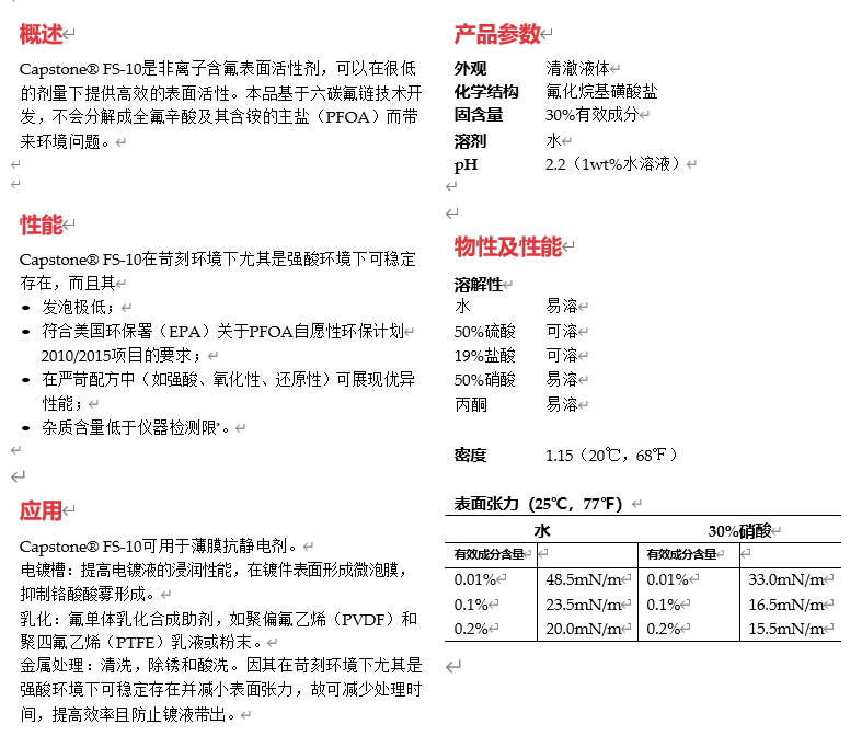 科慕Capstone?氟表面活性劑FS-10
